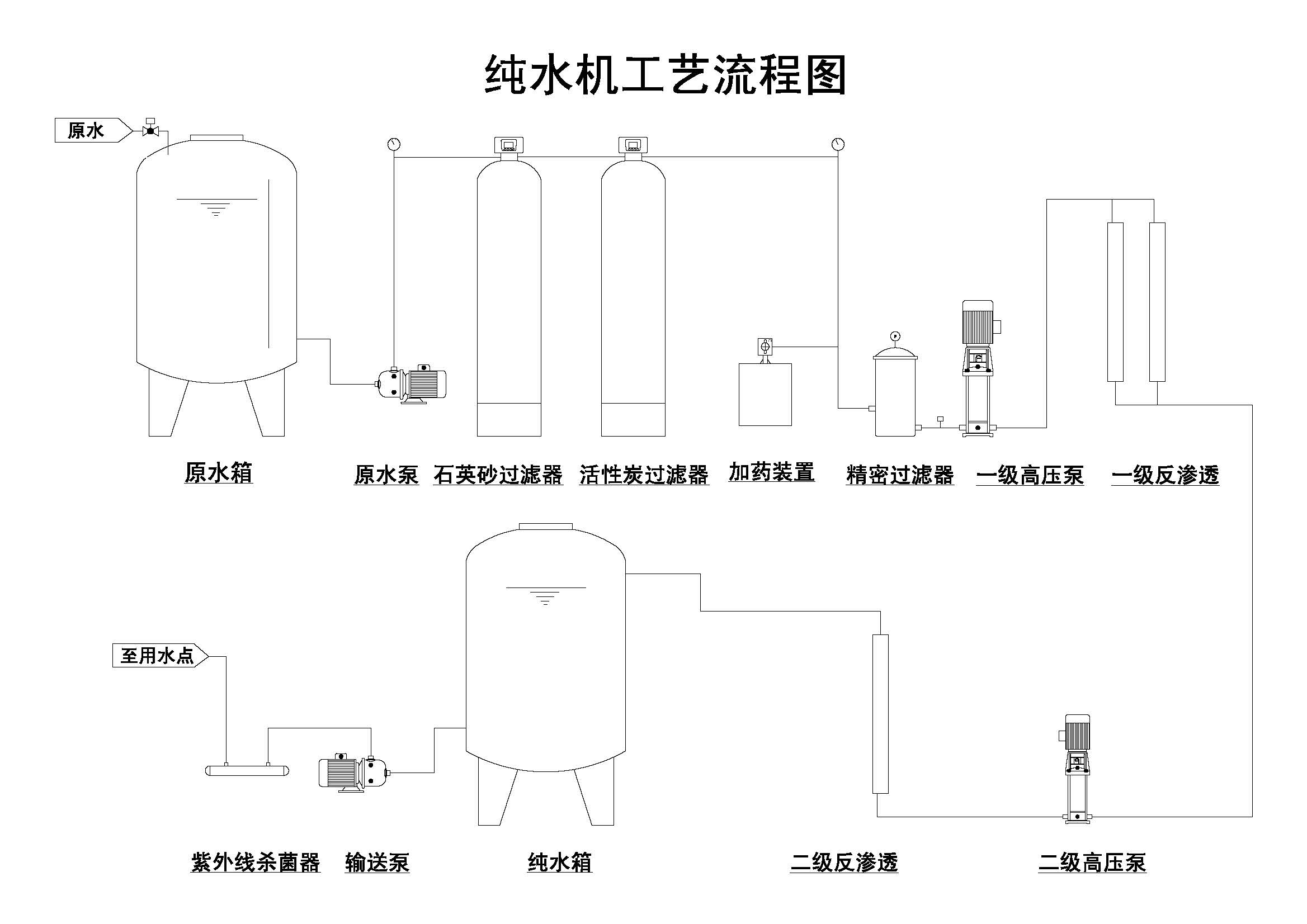 | 處理方式 | 預(yù)處理+雙級(jí)反滲透+恒壓輸送殺菌系統(tǒng) | 進(jìn)水管路要求 | ≥40mm |